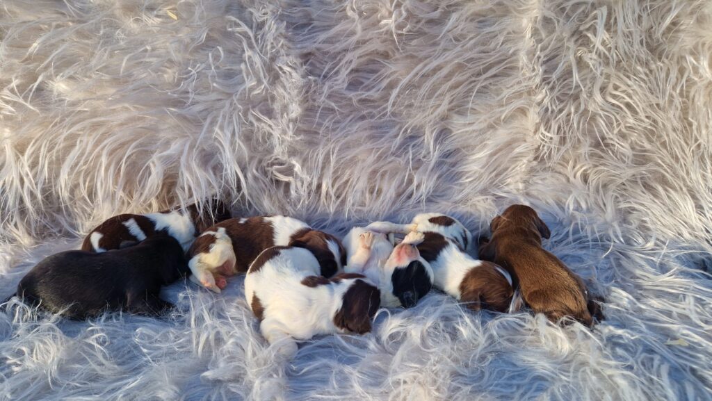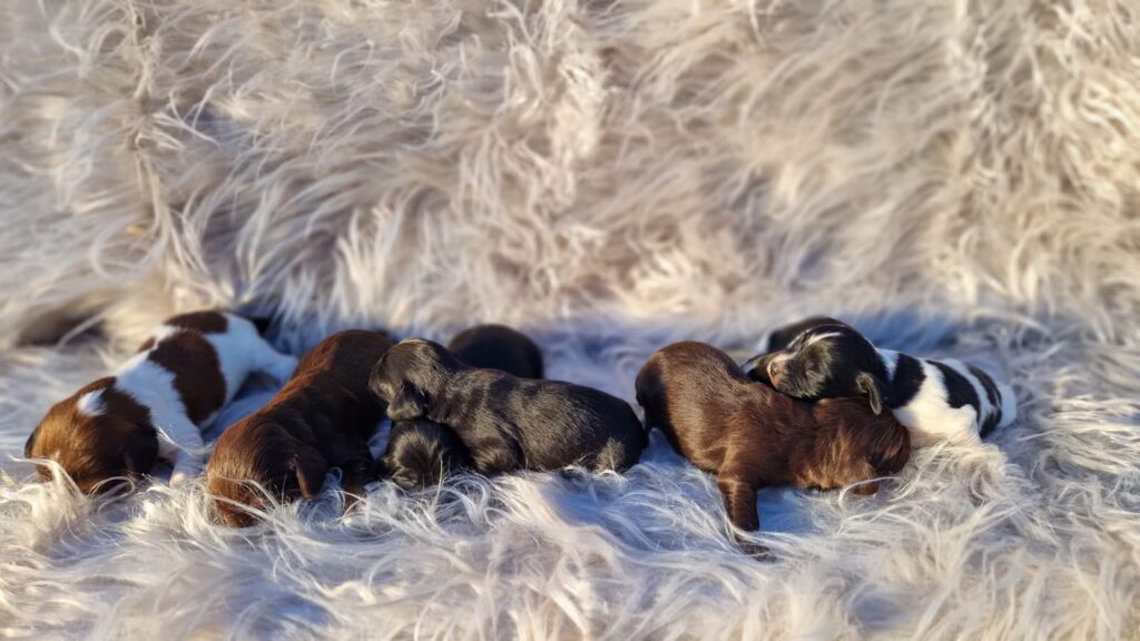 Op 5 en 6 januari 2026 zijn bij ons prachtige pups geboren uit een kruising Stabij × Cocker Spaniel. Een mooi en vitaal nest waar we met veel plezier en zorg bij betrokken zijn. Vanaf de eerste dag groeien de pups op in onze professionele omgeving, samen met hun moeder, andere honden en onze kinderen.